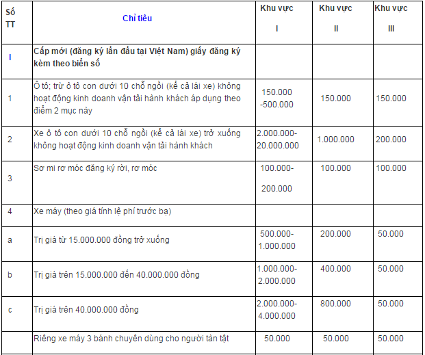 Quy định về lệ phí đăng ký ô tô, xe máy. |