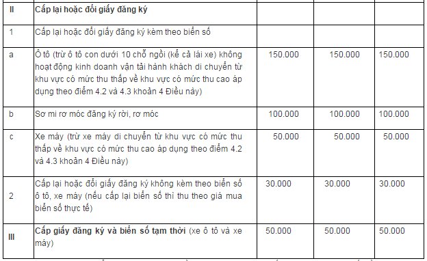 Đối với ô tô, xe máy của cá nhân đã được cấp giấy đăng ký và biển số tại khu vực phải nộp lệ phí quy định mức thu thấp, chuyển về khu vực phải nộp lệ phí quy định mức thu cao vì lý do di chuyển công tác hoặc di chuyển hộ khẩu, mà khi đăng ký không thay đổi chủ tài sản và có đầy đủ thủ tục theo quy định của cơ quan công an thì áp dụng mức thu cấp lại hoặc đổi giấy đăng ký và biển số.