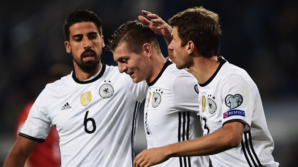 Cú đúp của Thomas Mueller và một bàn của Toni Kroos giúp Đức dễ dàng vượt qua CH Czech với tỷ số 3-0 để tiếp tục dân đầu bảng C vòng loại World Cup 2018 kv châu Âu.