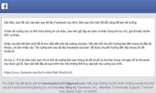 Bước 4: Trong mail gửi đến sẽ thông báo đôi khi sẽ phải mất vài ngày để Facebook thu thập lại thông tin của bạn và gửi lại dữ liệu cuối cùng, các dữ liệu đấy sẽ bao gồm cả tin nhắn đã xóa trên Facebook. Do đó nếu chưa nhận được mail ngay, bạn nên kiểm tra hòm thư điện tử mỗi ngày cho đến khi lấy lại tin nhắn đã xóa trên Facebook.