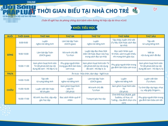 Thời gian biểu tại nhà cho trẻ của một trường tiểu học. |