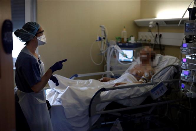 Nhân viên y tế điều trị cho bệnh nhân mắc COVID-19 tại một bệnh viện ở Paris, Pháp ngày 7/4/2020. Ảnh: AFP/TTXVN |