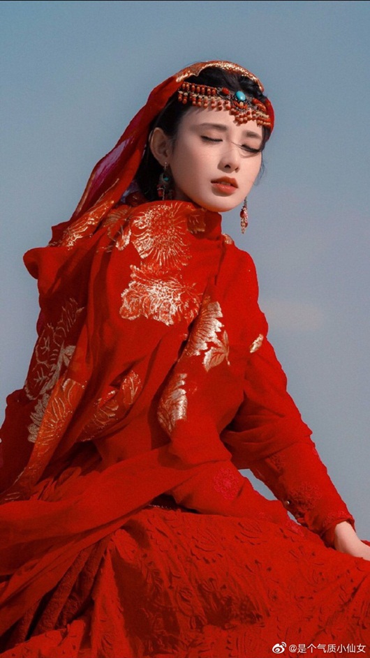 Nàng Lệ Cơ của Địch Lệ Nhiệt Bà cũng gắn liền với trang phục đỏ. |