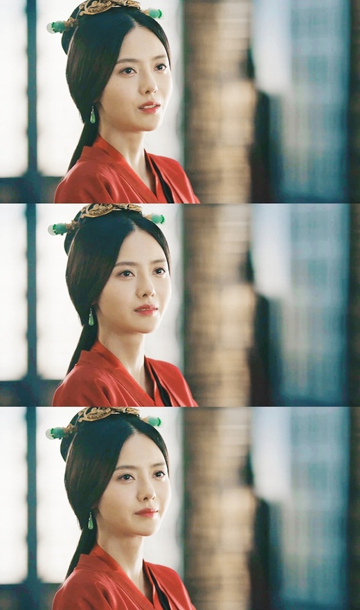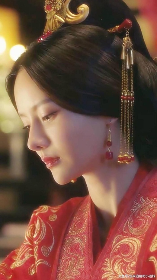 Hình ảnh Trương Chỉ Khê rạng rỡ trong bộ váy đỏ phẫn uất rơi lệ khiến nhiều khán giả đau lòng thay cho nàng Chân Mật. |