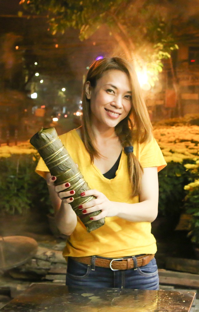 Năm nay, cô vẫn tiếp tục thực hiện tục lệ truyền thống này. Được biết, cô không chỉ gói bánh tét mà còn tự tay làm tất cả các công đoạn từ việc nhóm lửa cho đến việc thức suốt đêm để canh cho bánh chín.