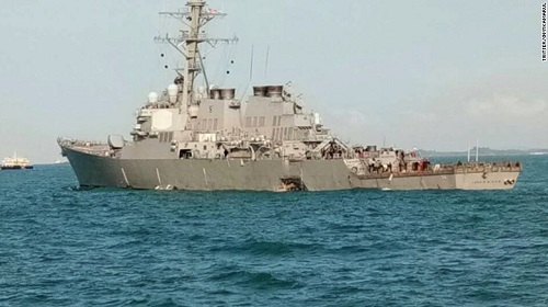 Trong sự cố mới nhất xảy ra vào hôm 21/8, tàu khu trục USS John S. McCain đã va chạm với tàu chở dầu treo cờ Liberia gần Singapore, khiến 10 thủy thủ Mỹ mất tích và 5 người bị thương. Scott Swift, chỉ huy Hạm đội Thái Bình Dương của Mỹ hiện đang ở Nhật Bản gặp các chỉ huy và gia đình của thủy thủ gặp nạn trên Hạm đội 7.