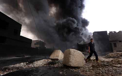 Khói bốc lên sau một vụ tấn công ở Qayarrah, Iraq. (Ảnh: iraqinews) |