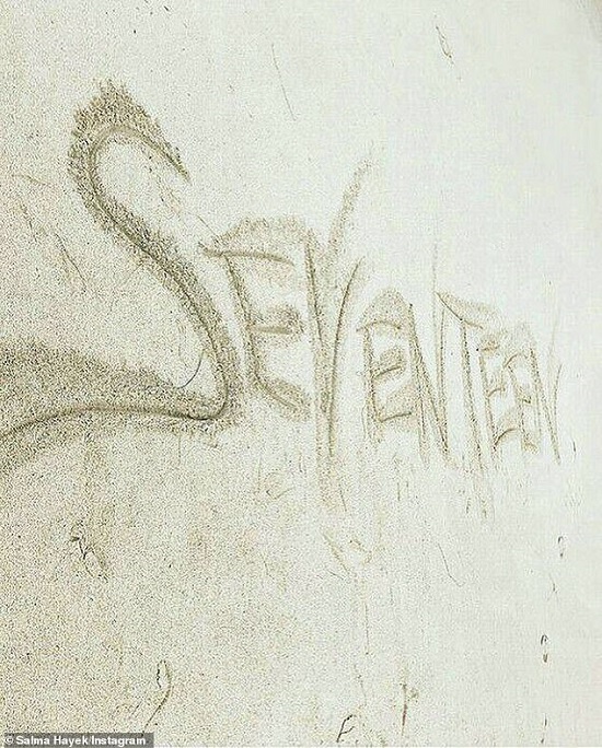 Cô bày tỏ sự vui mừng với thành tựu mới và khắc chữ "Seventeen" (tượng trưng cho 17 triệu lượt theo dõi) ở trên cát. |