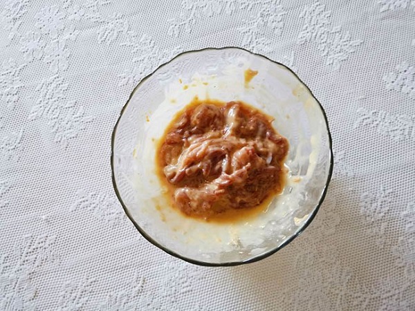 Trộn thịt với bột cùng nhau sao cho bột phủ đều các miếng thịt.
