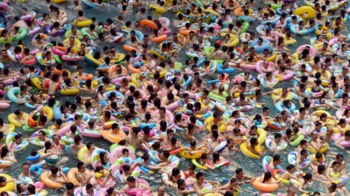 Hàng ngàn người chen chúc tại bể bơi nước mặn tại tỉnh Tứ Xuyên (Trung Quốc). Ảnh: Getty Images |