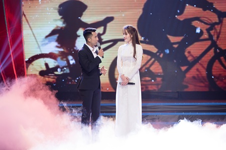 Trong bộ áo dài trắng thướt tha, Nam Em đã có phần giao lưu rất tự nhiên cùng MC Xuân Hiến. Cô cho biết, dù mới hơn 20 tuổi nhưng mình đã trải qua rất nhiều cung bậc của cảm xúc. Từ nỗi đau gia đình đã giúp cô mạnh mẽ và ngồi đây, có cơ hội kể lại câu chuyện đời mình, để truyền cảm hứng vươn lên cho biết bao người đồng cảnh ngộ thậm chí bi đát hơn cô.