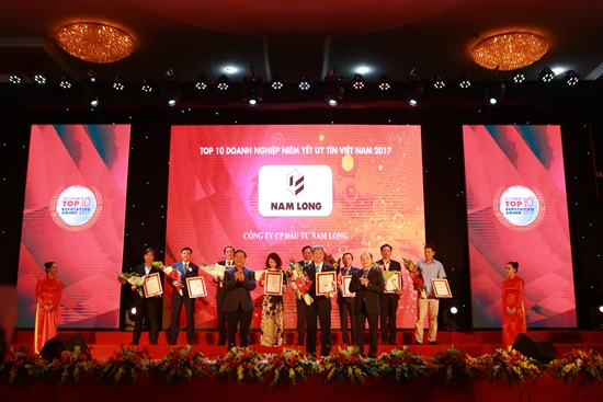 Công ty CP Đầu tư Nam Long (HOSE: NLG) đã chính thức được vinh danh trong “Top 10 Công ty niêm yết Uy tín” và “Top 500 doanh nghiệp lớn nhất Việt Nam” năm 2017.