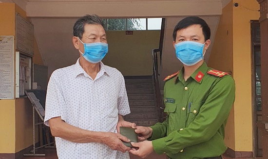 Công an xã Tùng Lộc trao lại chiếc ví cho ông Tuất. Ảnh: Báo Hà Tĩnh |