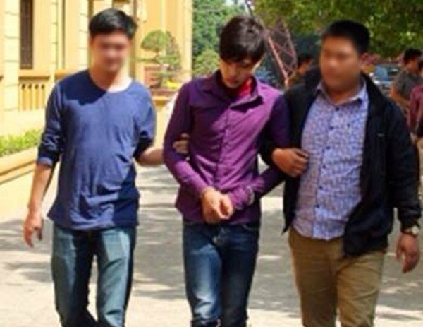 Đối tượng Phạm Minh Vương (giữa) khi bị bắt. |