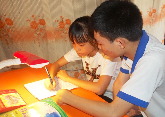 Ngoài thời gian tự học, Lương còn giúp em gái luyện tập thêm môn tiếng Anh. Ảnh: Dân Trí. |