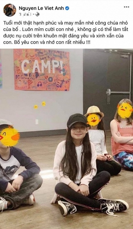 Bài đăng chúc mừng sinh nhật con gái của Việt Anh trên Facebook cá nhân. |