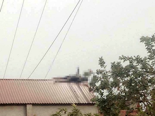 Xác nam thanh niên bị giật cháy khô trên mái nhà . Ảnh: Tri thức trực tuyến. |