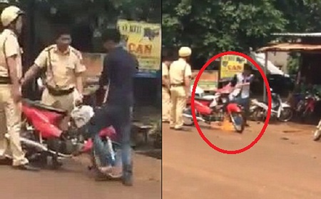 Nam thanh niên bị CSGT dừng xe kiểm tra. Ảnh cắt từ clip. |