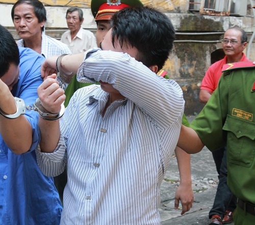 ![]() Bị cáo Tâm tại tòa phúc thẩm (áo sọc trắng). |