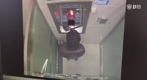 Camera giám sát tại một cây ATM của Ngân hàng Thượng Hải đã quay được cảnh không thể tưởng tượng được. Vào lúc rạng sáng, một thanh niên bịt mặt mang theo bút dạ đến tô màu làm đen màn hình máy quay giám sát phía trước, rồi bắt đầu lấy một cái búa ra khỏi túi và bắt đầu đập phá cây ATM.