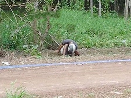 (ĐSPL) - Tại hiện trường, người đàn ông ngồi bệt xuống đất, cúi gập xuống đường tử vong.