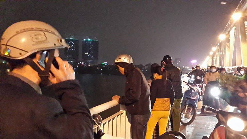 Theo một nhân chứng cho biết, thời điểm trên một nam thanh niên khoảng trên 20 tuổi bất ngờ leo qua thành cầu rồi nhảy xuống sông Hồng. Ngoài ra bên thành cầu có một người phụ nữ đứng tuổi (được cho là mẹ nạn nhân) gào khóc thảm thiết.