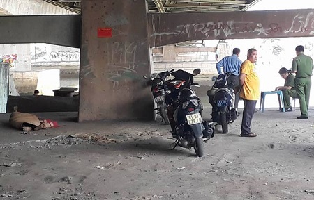 Nhận được tin báo, lực lượng công an, dân quân của P.Bình Thắng đã đến nơi và tổ chức khoanh vùng bảo vệ hiện trường, ghi nhận lời khai ban đầu. Thi thể nạn nhân sau đó được đưa vào bãi đất dưới chân cầu để phục vụ công tác khám nghiệm.