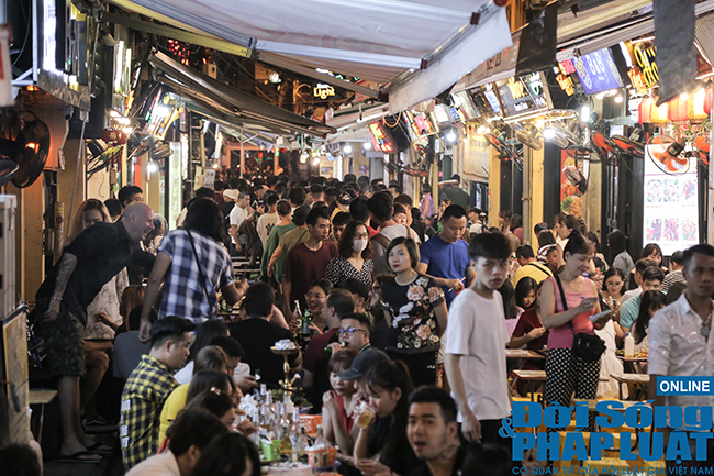Trong khi đó, tại khu vực phố Tạ Hiện (quận Hoàn Kiếm, Hà Nội) dường như không còn chỗ trống. |