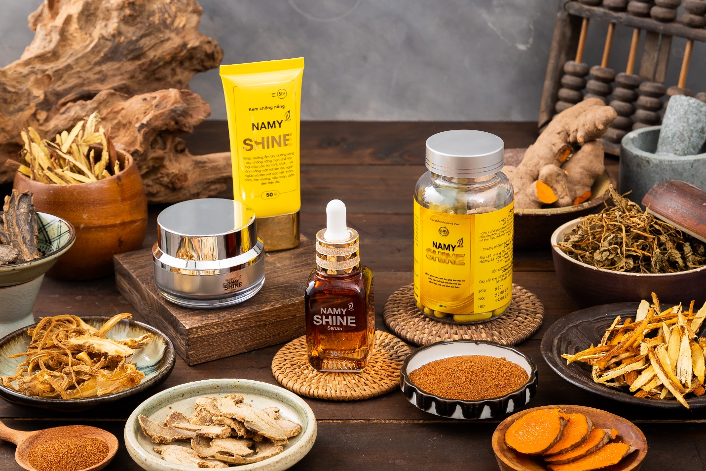Bộ sản phẩm Namy Shine bao gồm 4 sản phẩm: kem chống nắng, serum, viên uống trị nám và kem dưỡng trắng da. Đây là bộ sản phẩm đầy đủ cả kem bôi ngoài da và viên uống, giúp bảo vệ toàn diện từ bên trong ra bên ngoài và ngược lại. Các chuyên gia đã kết hợp hai hoạt chất vàng là Alpha Arbutin và Pyncnogenol trong cây thông đỏ theo công thức hoàn hảo tạo ra dòng sản phẩm giúp ngừa nám, làm sáng da, chống nắng, cấp ẩm và trẻ hóa da. Bên cạnh đó, nhờ sự có mặt của một số dược thảo quý trong Đông y mang lại công dụng vượt trội trong điều hòa kinh nguyệt, cân bằng nội tiết tố và nâng cao sức khỏe.