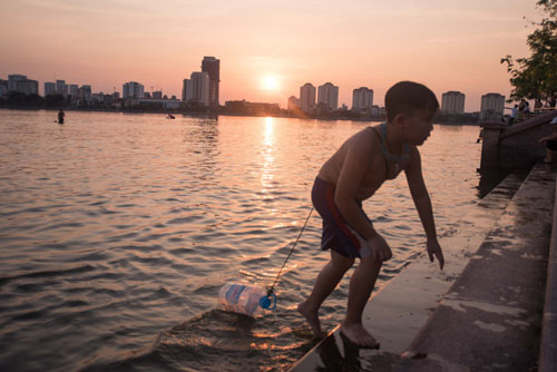 Thời tiết Hà Nội nóng như đổ lửa, cho nên nhu cầu giải nhiệt của người dân tăng cao. Thay vì đến các bể bơi chuyên nghiệp, nhiều người lại chọn Hồ Tây như một “bãi tắm” lý tưởng.