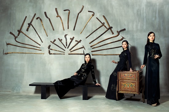 | Áo dài tôn lên chiều cao và vóc dáng “thắt đáy lưng ong’ của các người đẹp Thúy An, Nguyễn Tuyết, Thanh Vân. |