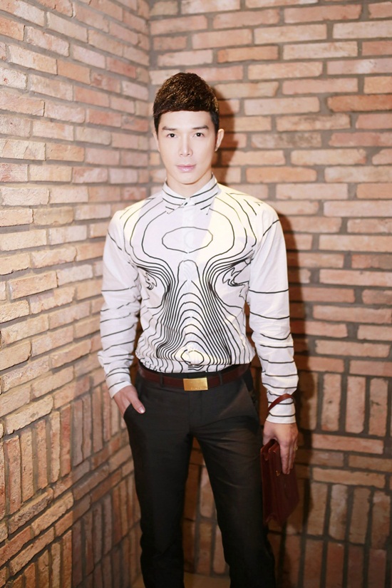 Xuất hiện trẻ trung và lịch lãm với quần tây Giorgio Armani sang trọng, áo chemise Christopher Kane sành điệu cùng dây nịt Bvlgari ''tone sur tone'' với túi Cartier đẳng cấp, Nathan Lee thân thiện tạo dáng trước ống kính phóng viên.