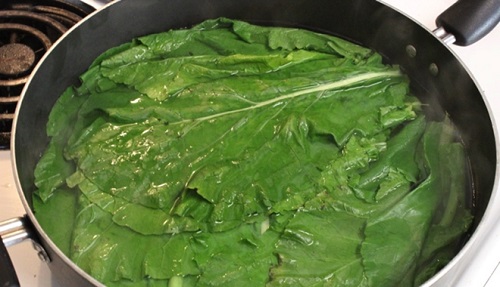 Cải bẹ xanh chọn những lá to bản, không bị giập nát, cắt bỏ bớt phần cuống, sau đó rửa sạch.