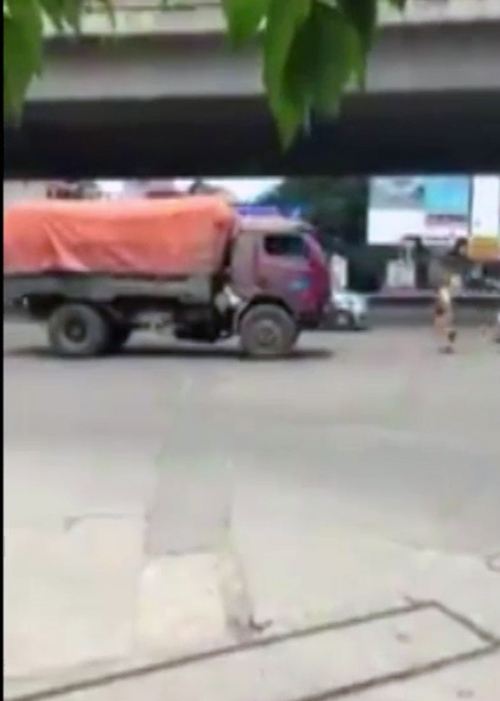 Hai chiến sĩ CSGT chạy theo chừng 200 m thì chiếc xe tải phải dừng lại vì vướng một ô tô phía sau. Bức xúc trước hành vi của tài xế xe tải, một số người dân định lao vào hành hung anh này nhưng các chiến sĩ CSGT kịp thời can ngăn.