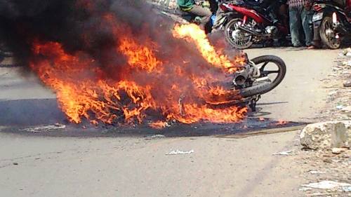 Xe máy bỗng nhiên bốc cháy ngùn ngụt khi ngã xuống đường. Ảnh minh họa |