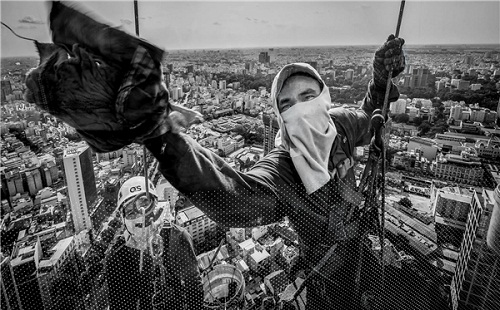 | Ảnh 2: Người lau kính trên sợi dây - Huỳnh Dũng |