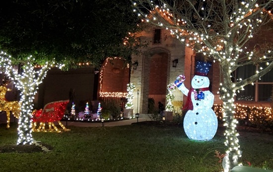 Căn biệt thự trở nên lung linh, tràn ngập màu sắc với đèn điện, những đồ vật trang trí bên ngoài như mô hình người tuyết, tuần lộc... cũng hoành tráng, rực rỡ. |