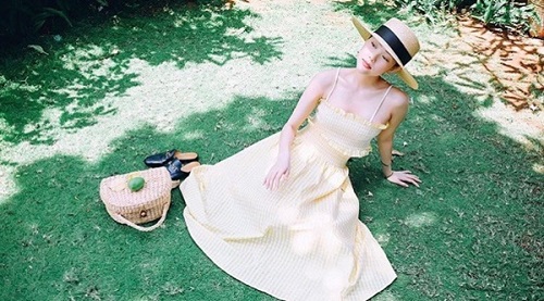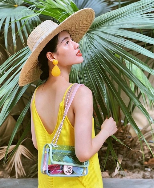 Khánh Linh The Face khi đi du lịch luôn lựa chọn những trang phục nổi bật bắt mắt để lên hình thật long lanh. Dưới ánh nắng đầu hạ, cô nàng diện chiếc váy vàng, thêm chiếc nón cói rộng vành, túi xách Chanel trong suốt đẳng cấp cùng thấn thái đầy sang chảnh tạo nên một bức ảnh không thể chê vào đâu được.