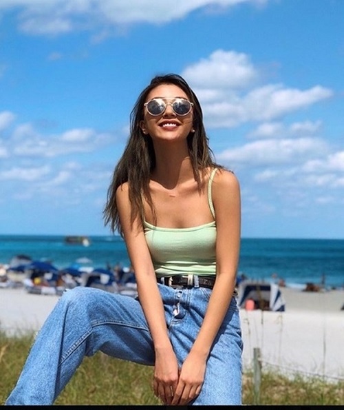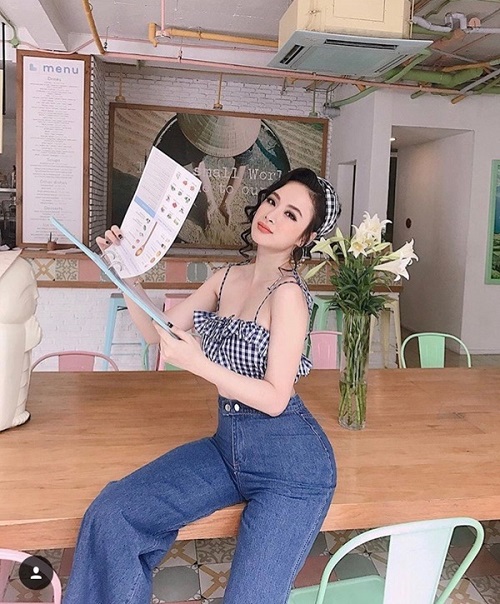 Angela Phương Trinh thời gian gần đây chăm khoe vòng 3 hơn nên mỗi khi đi du lịch "bà mẹ nhí" thường xuyên sắm những bộ cánh gợi cảm. Trong chuyến đi chơi mới nhất, mỹ nhân 9x đã kết hợp áo 2 dây ngắn chỉ bằng một gang tay nóng bỏng cùng quần jeans lưng cao ôm sát để tôn vòng 3 căng tràn gợi cảm của mình.