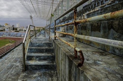 Khán đài vắng bóng người, hoen rỉ. Sắc lam của hàng vạn cổ động viên sông Hàn ngày ấy giờ thay bằng sắc xanh của rêu phong. Xót xa, chua chát...