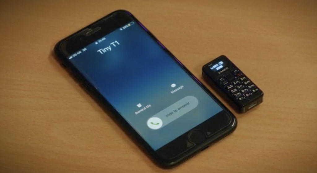 Chiếc điện thoại Zanco Tiny T1 có kích thước 46,7 x 21 x 12mm, nhỏ hơn ngón tay cái, điện thoại có đầy đủ các tính năng như những chiếc điện thoại bình thường.
