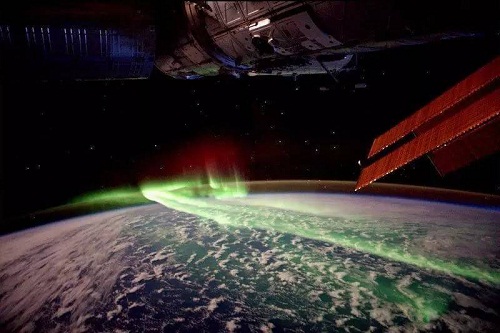 | Hình ảnh cực quang ở phương Bắc được chụp lại từ tàu vũ trụ ngoài không gian. |