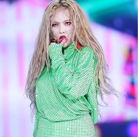 Sunmi ưa chuộng màu son đỏ cổ điển và những đường kẻ mắt đen đầy quyến rũ khi ở trên sân khấu.