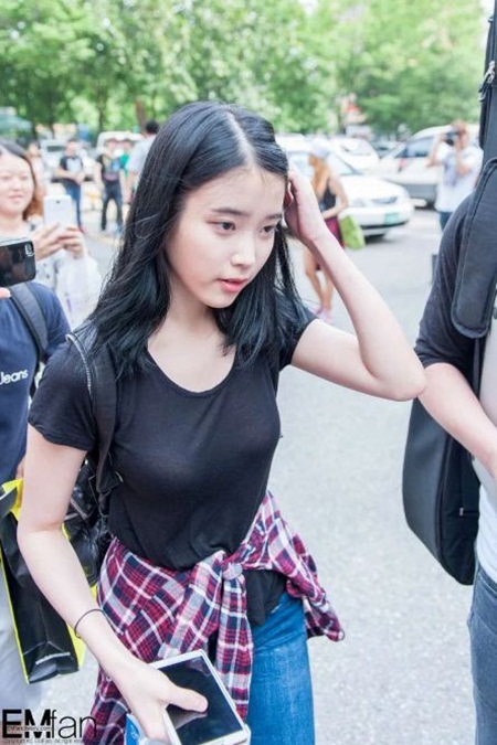 Bởi thế, tất nhiên, IU cũng chẳng ngán gì để mặt mộc đi khắp nơi. "Em gái nhà bên" muôn người yêu mến cơ mà!