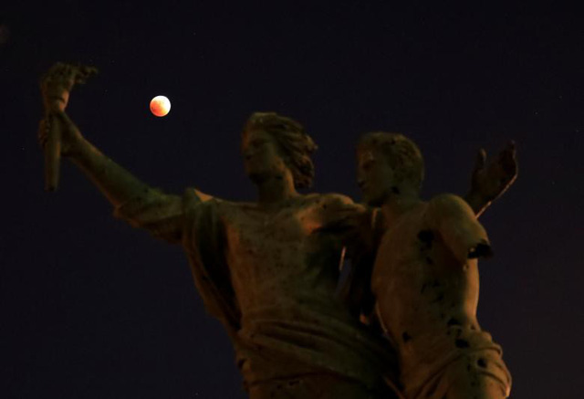 "Trăng máu" ló sau Đấu trường cổ La Mã ở Rome, Italy. (Ảnh: AP) |