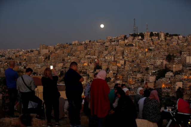 Những người yêu thiên văn ở Jordan chọn sẵn một vị trí thuận lợi để có thể chiêm ngưỡng hiện tượng nguyệt thực toàn phần dài nhất thế kỷ. |