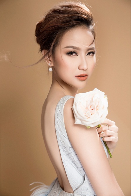Sắc màu xanh xám hay hồng nude dịu nhẹ đã tôn vinh một cách hoàn hảo vẻ đẹp ngọt ngào, yểu điệu của Khánh Ngân.