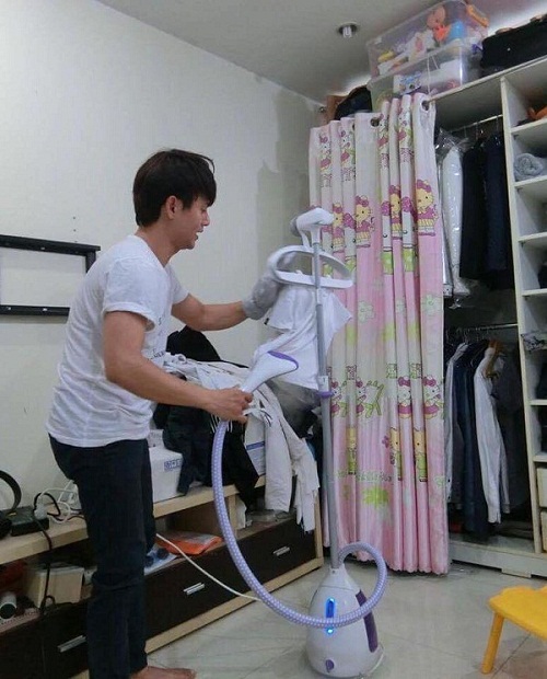 | Ưng Đại Vệ rất khéo léo khi ủi đồ cho con |