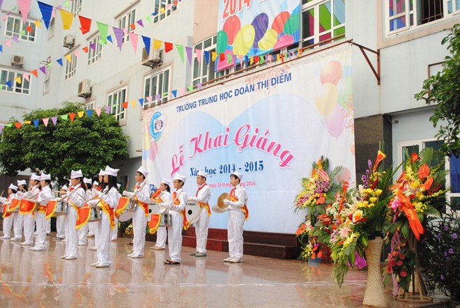 Sáng 28/8, trường trung học Đoàn Thị Điểm (Hà Nội) đã tổ chức lễ khai giảng năm học mới 2014-2015. Đây là một trong số những trường tổ chức khai giảng sớm nhất trên cả nước.