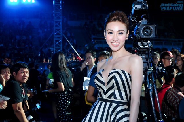 | Vừa kết thúc những cảnh quay đầu tiên của phim "Mỹ nhân Sài Thành”, Ngân Khánh đã kịp có mặt thật lộng lẫy tại lễ trao giải HTV Awards với vai trò khách mời trao giải. |